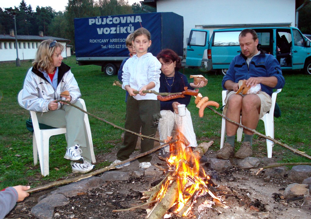 večeře u táboráku (čím menší dítě, tím větší klobása)