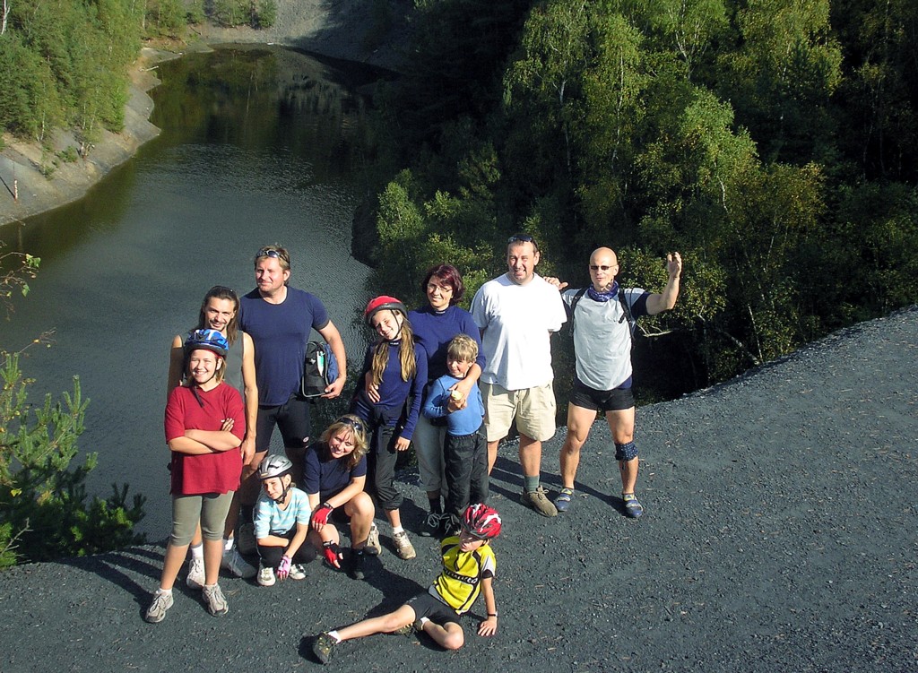 ...skupinové foto - Vlaďka chtěla opravdu udělat 2 kroky dozadu na přání fotografa (do konce akce trpěla údajnou fóbií z výšek)