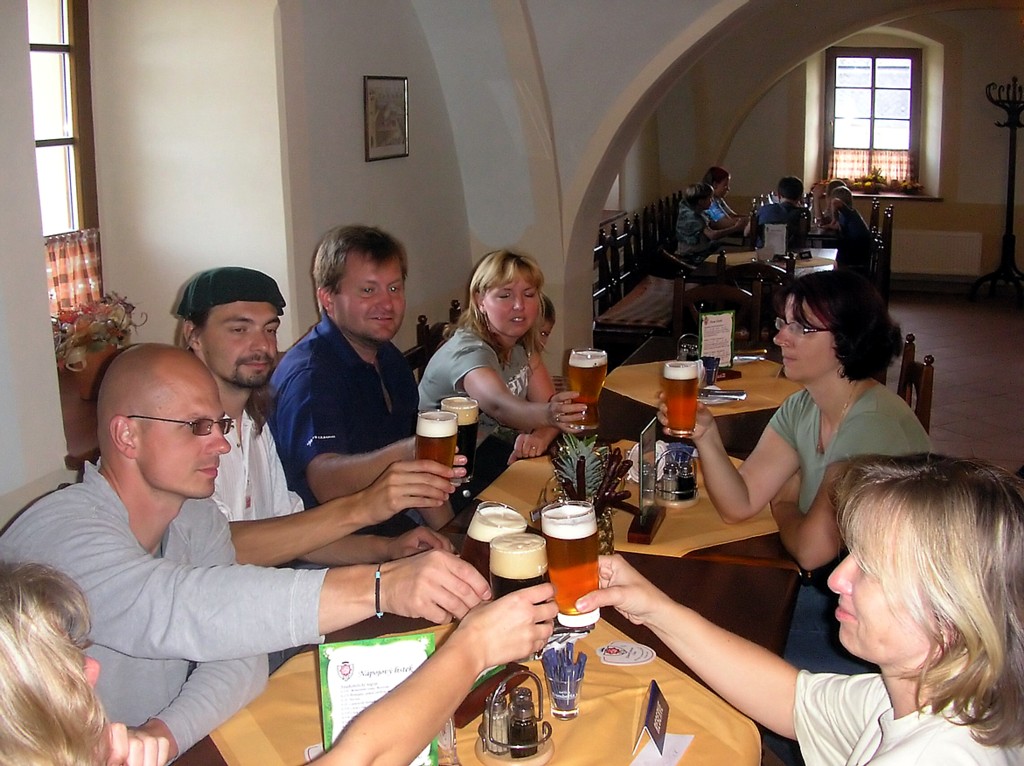 pivo teče odtamtud sem, pak tam a nakonec do krku