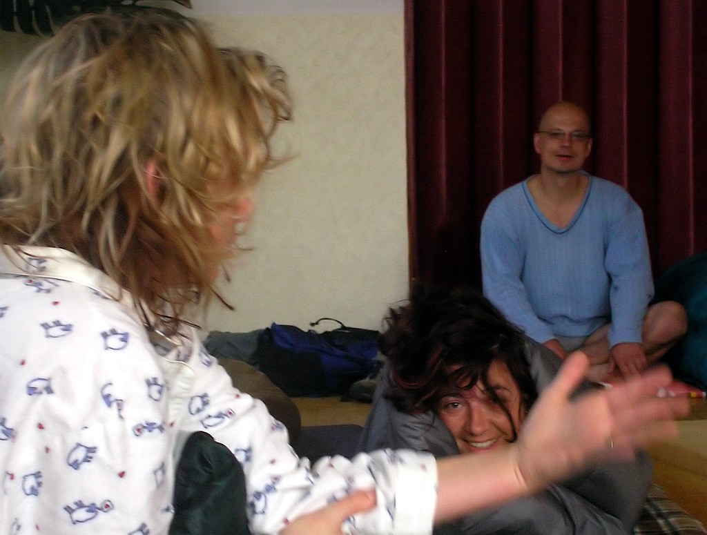 všichni: "Jirkó, póď, seš chlap", Vlaďka: Jirko stůj, máš rodinu"