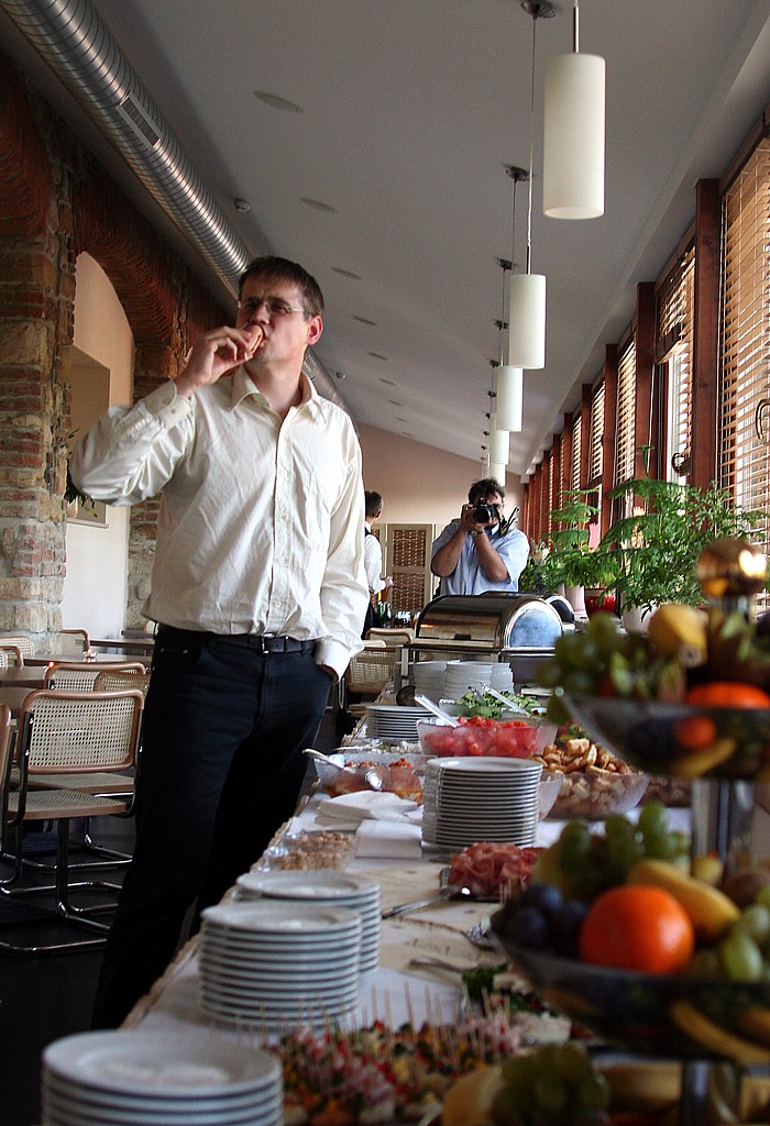 Dan kontroluje slavnostní tabuli