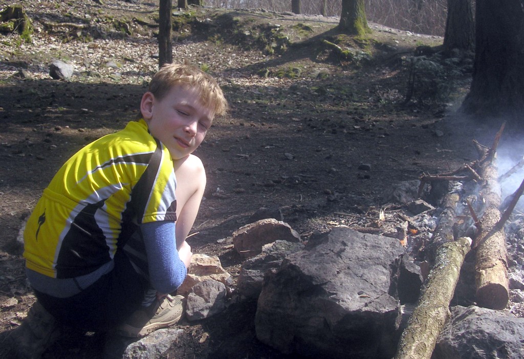 Jeník dýchá do ohýnku aby měl dnes aspoň něco teplého