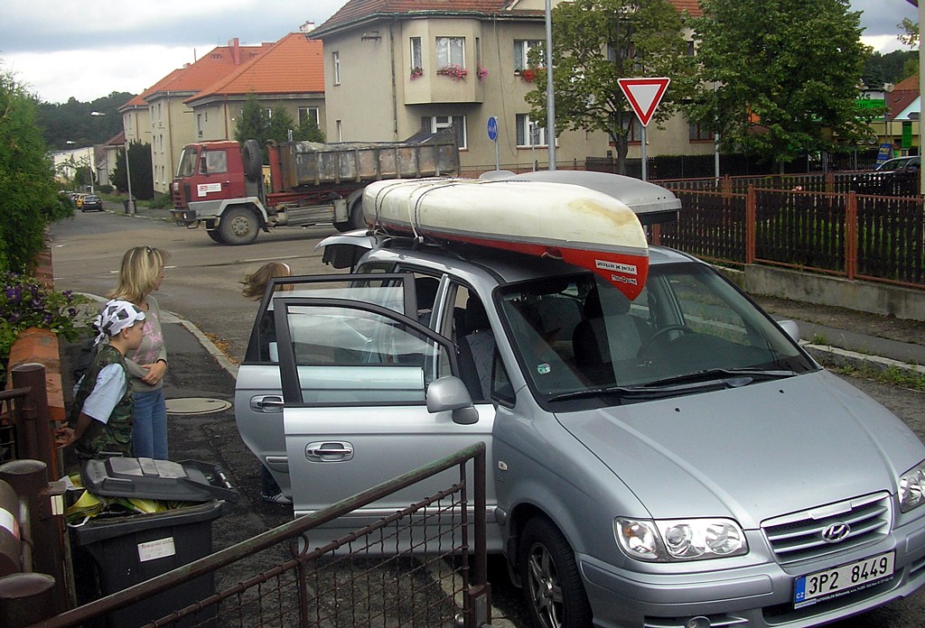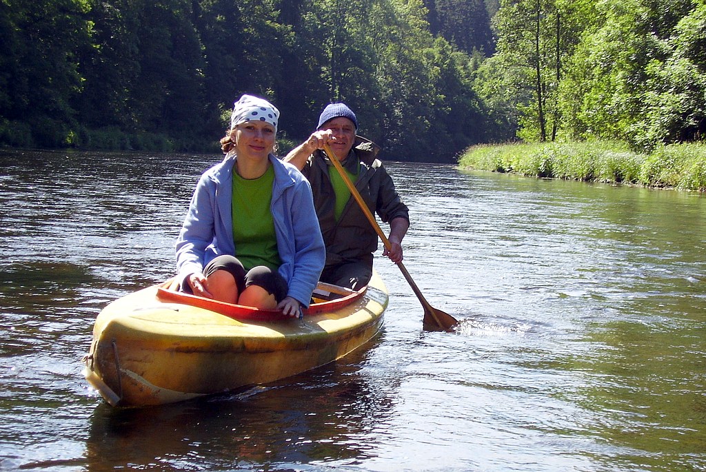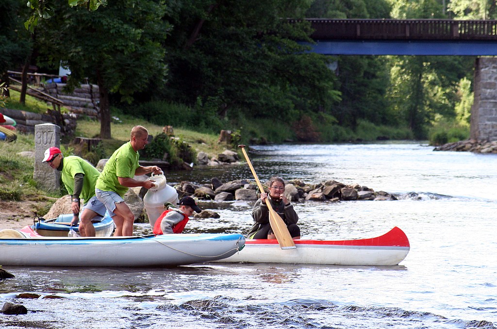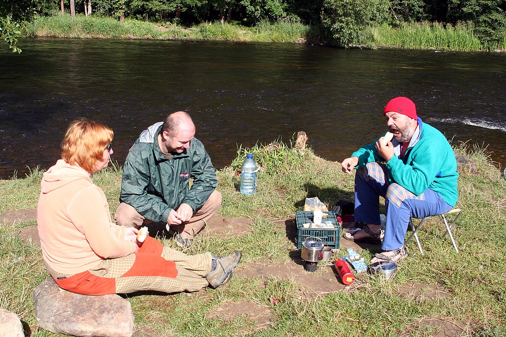 Závěrem přikládám pokus videa, jak se Čenda trefuje a jak podobnou překážku překonává Vláďa . Připouštím, že ve formátu videa nejsem moc silný, možná bude lepší cíl nejprve někam (pravou tlapkou myšičky :)) uložit a vyzkoušet na něj víc přehrávačů - a vy ostatní šťastní, kteří vidíte rovnou i obraz nám zajisté závidíte perfektní vodácké počasí.