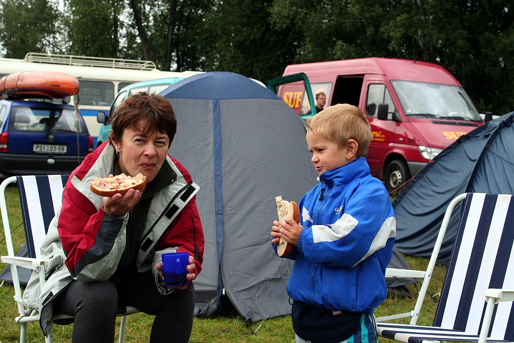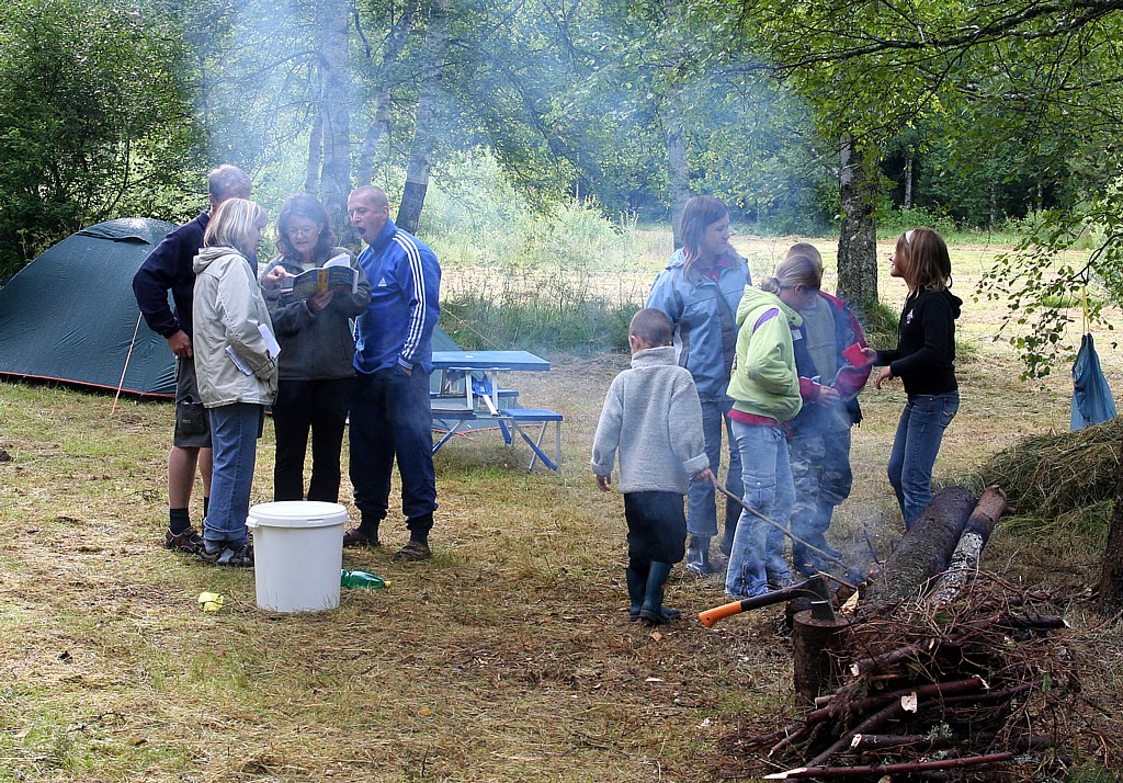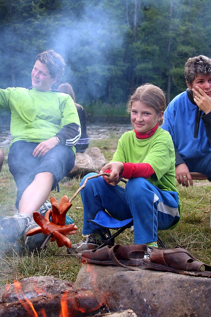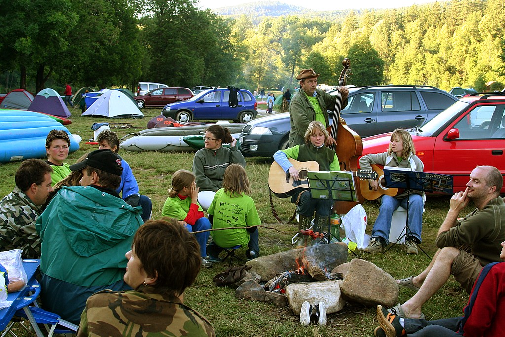 večer v kempu spálení, unavení, ale spokojení vodáci