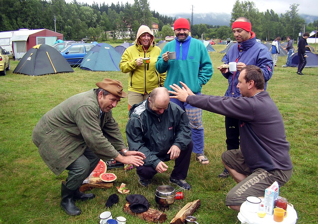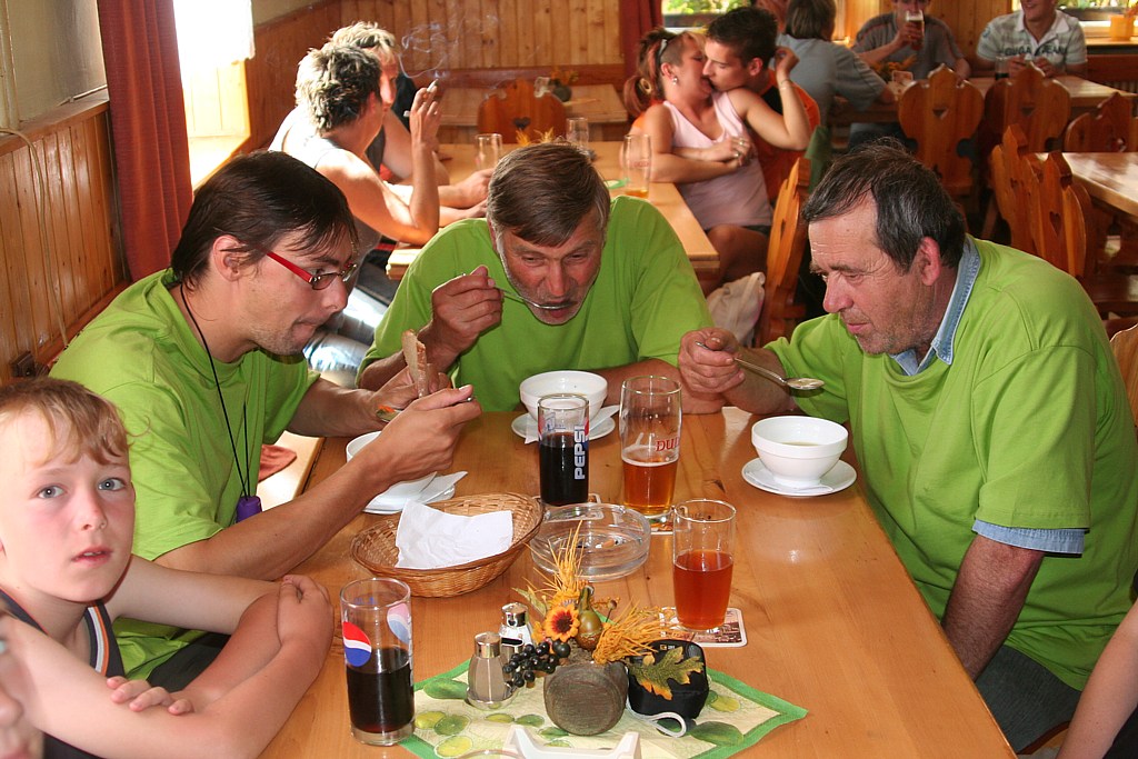 poslední zbytky výpravy v Hošticích na obědě