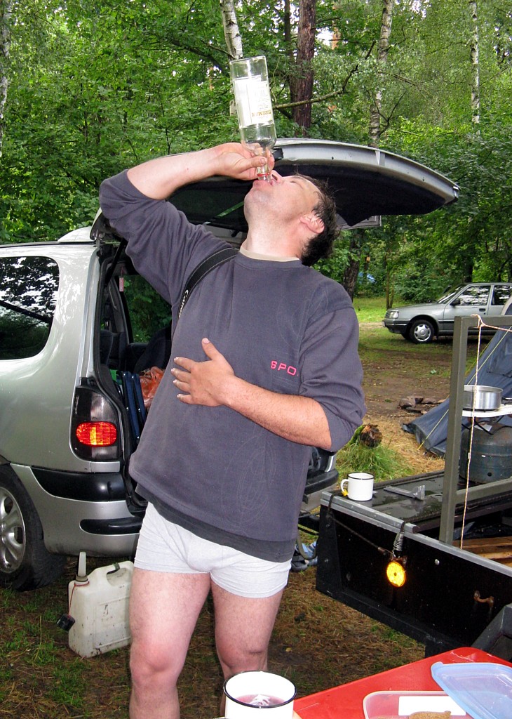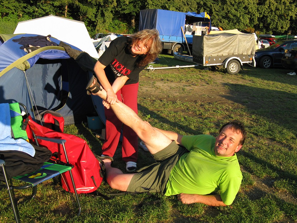 první večer, prvni pivo v kempu Na pískárně
