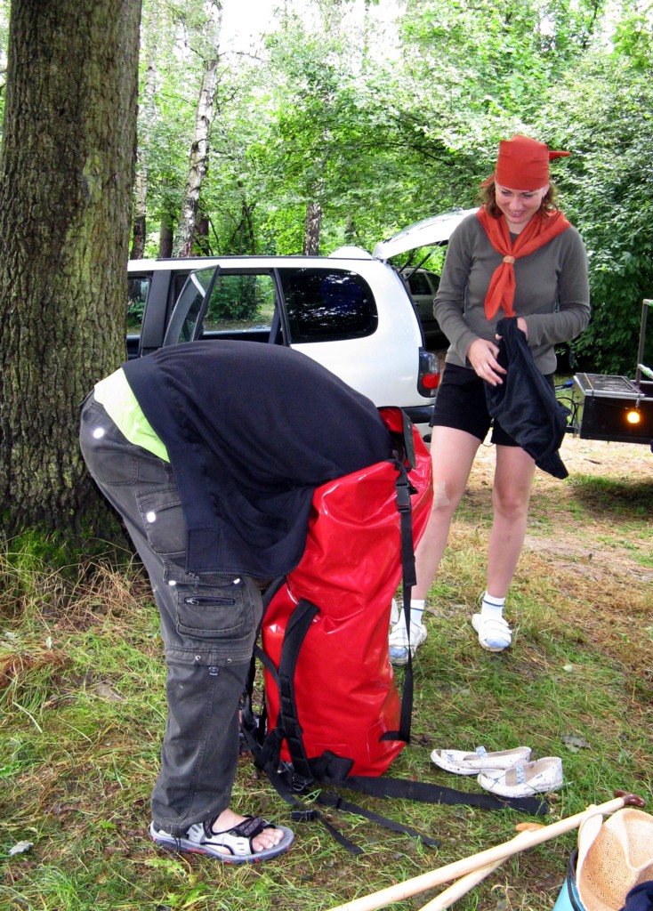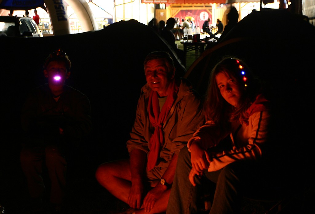 na tábořišti, kde jsme loni končili, se schováváme před deštěm