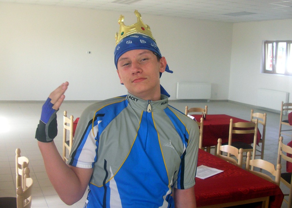 Břasy - korunování krále výpravy (asi jediný bez úrazu) zatímco Béďa nakupuje hodně zasloužené občerstvení